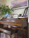 | A Winter Console. I bought it for $1000 from my buddy's sister about 2 years ago. I learned all my Merciless Night submissions on this thing. Speaking of which, there's a nasty C-Sharp that needs to be tuned. Above the piano is a limited edition, signed print of Michael Whelan's "The Leavetaking"--used in the Bat II booklet (associated with the song Anything for Love). That was the first Steinman song I fell in love with. Steinman's music motivated me to learn the piano--hence this image is particularly special to me. --BMV PS: Does this thread mean Ryan is going to show us the inside of his throat? | |