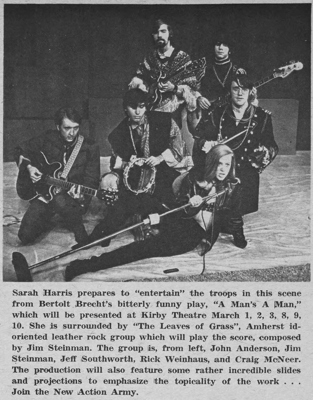 (Note : Because the use of rock music in theatre is still in the experimental stage, and because this Brecht production is the first use of rock for drama at Amherst College, the following review 'is presented in an attempt to clarify and explore just how effectively musk was used within the dramatic structure.)