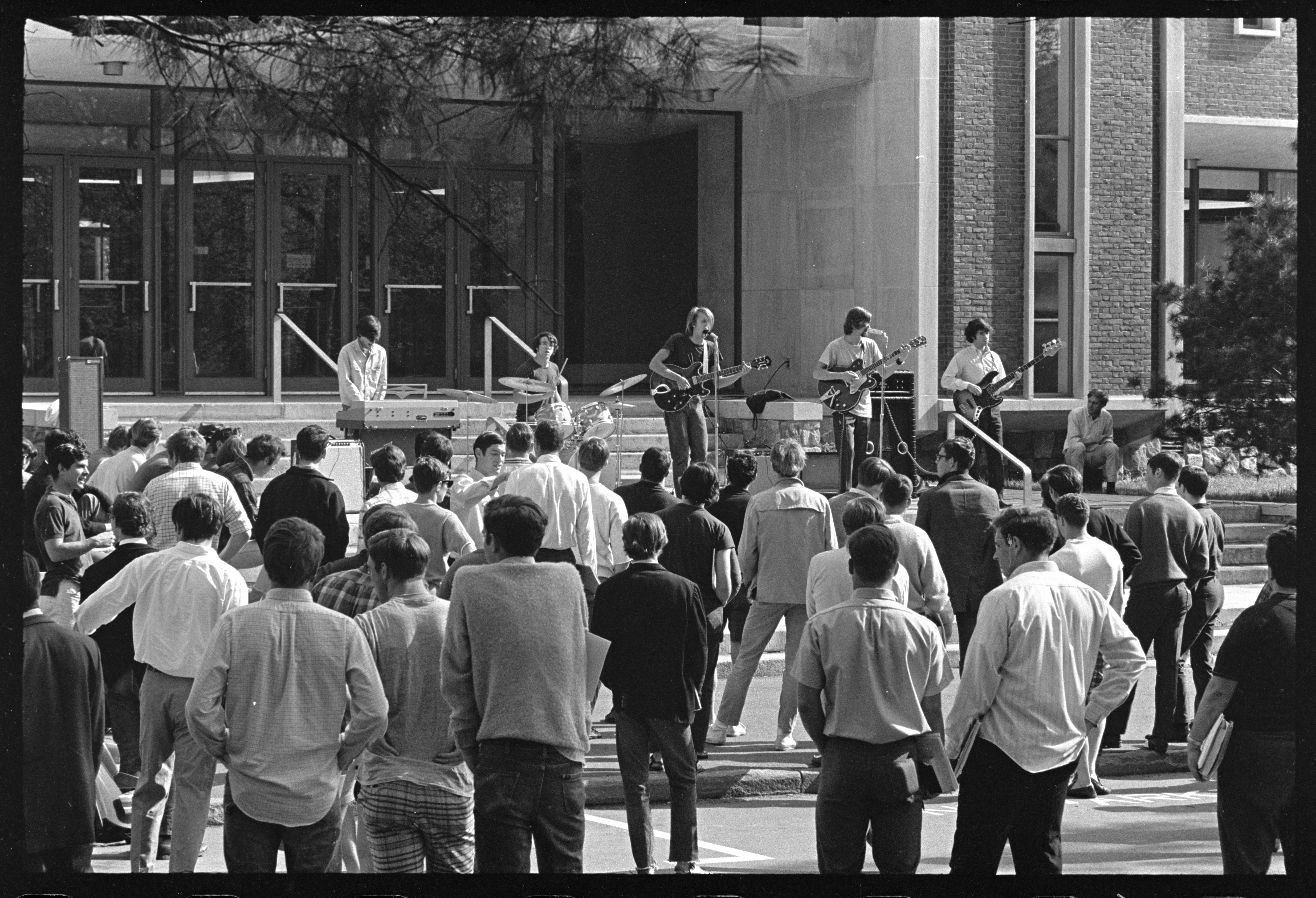Amherst rock band called "five magnificent musical clowns" by the Springfield Daily News.